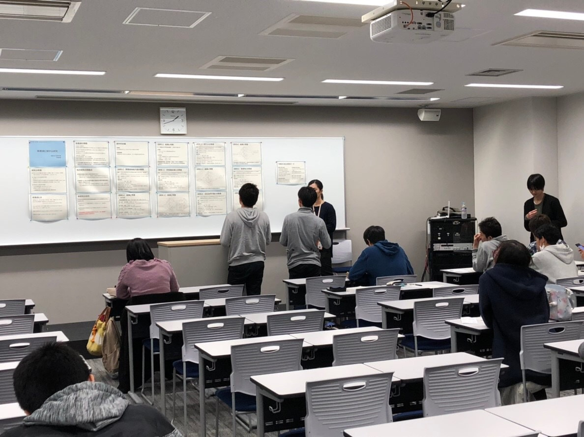 発表者は、はじめのうちは緊張した面持ちでしたが、セッションを重ねるにつれて生き生きと参加者に説明をしていました。また、参加者も自分の興味のある研究のポスターの前に行くなど積極的な姿が見られ、とても良い雰囲気の発表会となりました。