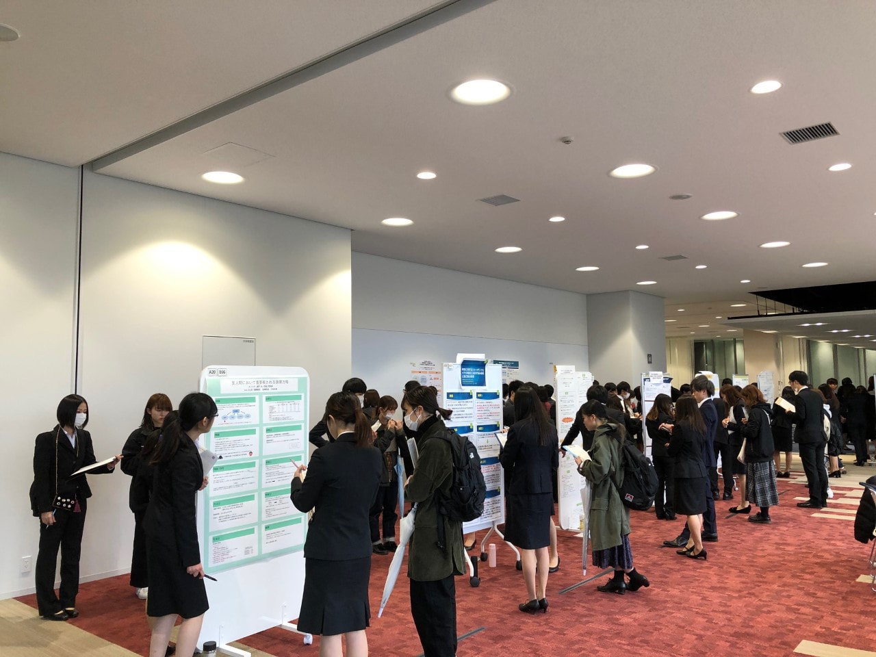 発表者は、はじめのうちは緊張した面持ちでしたが、セッションを重ねるにつれて生き生きと参加者に説明をしていました。また、参加者も自分の興味のある研究のポスターの前に行くなど積極的な姿が見られ、とても良い雰囲気の発表会となりました。